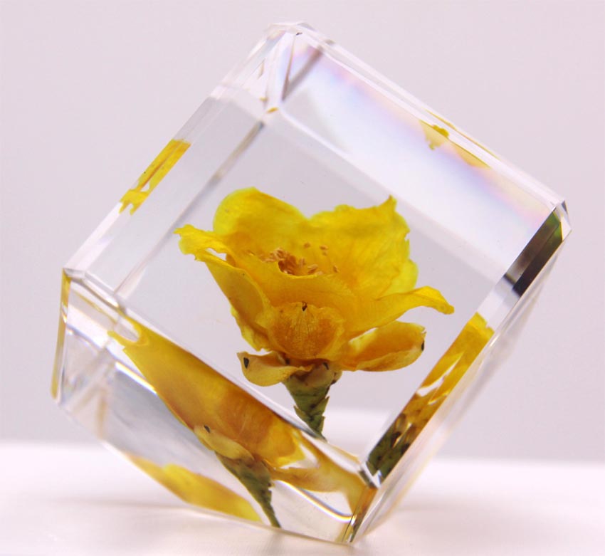 Real plant and insect specimens are inside resin which is crystal like but unbreakable